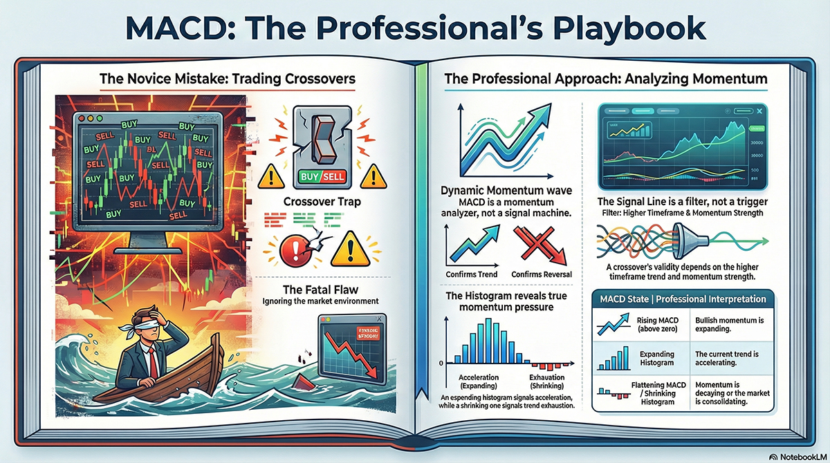 MACD strategy explained for system traders. Learn how EAs use MACD for momentum shifts, signal line behavior, and trend confirmation instead of naive crossovers.