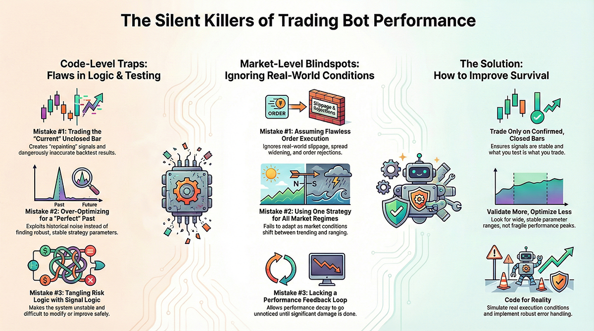Discover the most common EA programming mistakes in MQL5 that silently destroy performance. Learn how small bugs, poor assumptions, and optimization errors quietly drain profitability in real trading.
