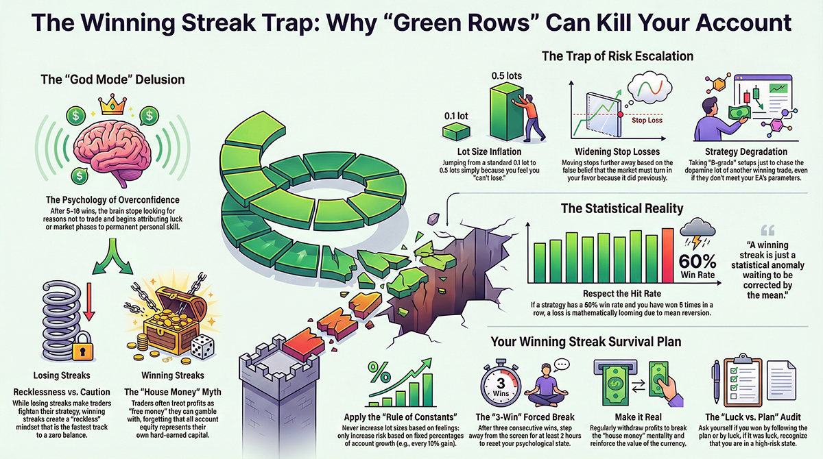 Discover why winning streaks in trading can be more lethal to your account than losses. Master trading psychology, avoid overconfidence, and protect your capital.