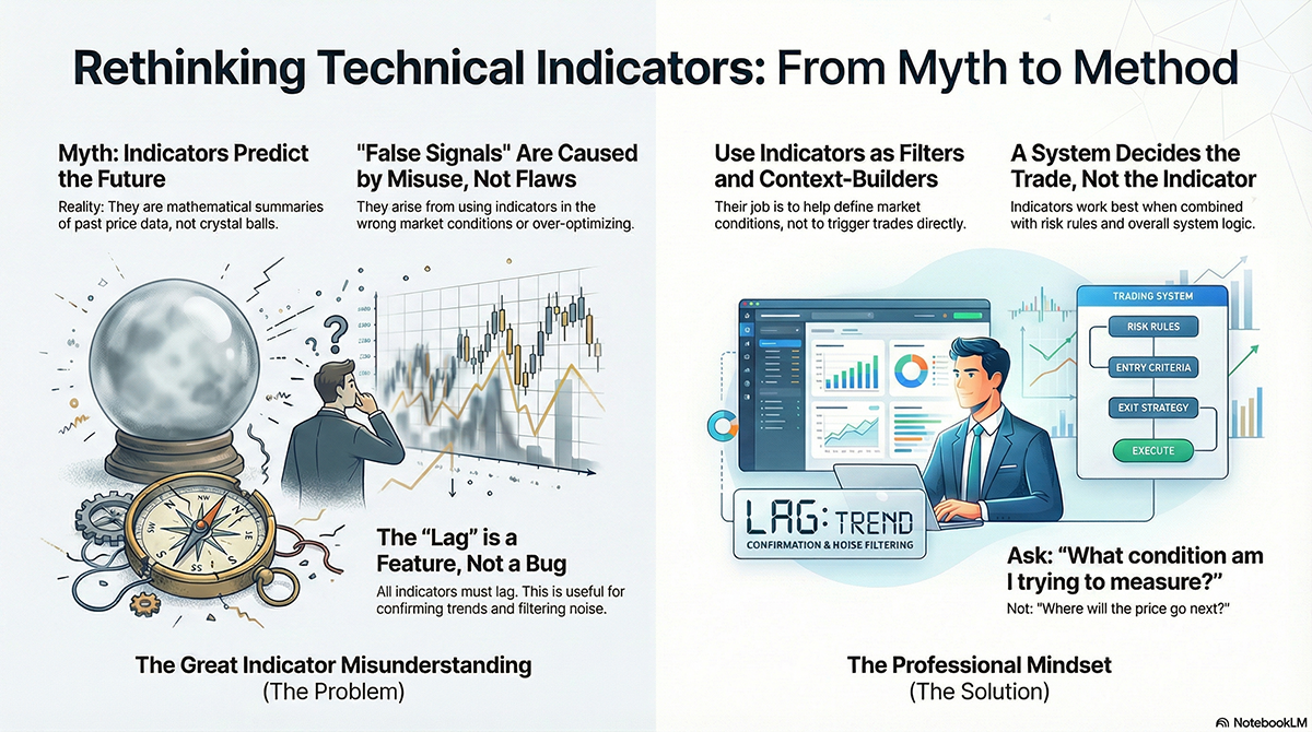 Most traders misuse technical indicators and blame false signals. Learn what indicators really measure, why they lag, and how EAs use them correctly for consistent performance.